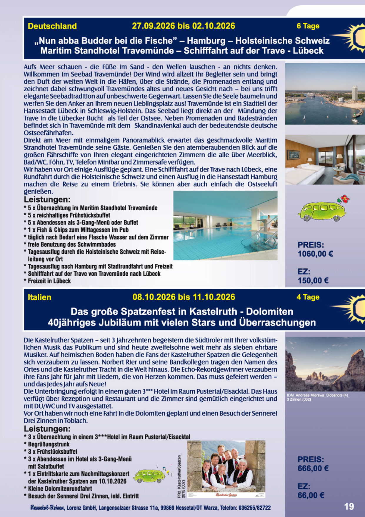 Mit dem Reisebus in den Urlaub, und dann später wieder zurück – natürlich ist dies eine sehr bequeme und stressfreie Art und Weise, den Urlaub zu starten und zu beenden. Aber das muss ja nicht alles sein. Wie wäre es einmal mit einer spannenden Busreise? Bei einer solchen Reise genießen Sie nicht nur den Komfort eine angenehme An- und Abreise, sondern werden auch an den Urlaubstagen zu interessanten Orten in der Umgebung des Reiseziels gefahren. In unserem Reisebüro können Sie Busreisen buchen, die Sie in die Alpenregion Deutschlands, Österreichs, Italiens oder der Schweiz bringen.